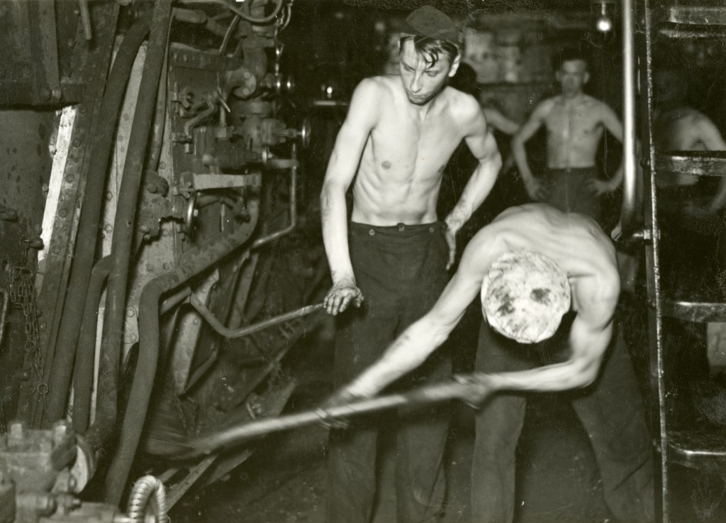 Senare började Charlie jobba på fartyget Bermudas som var på fem tusen ton och hade sex fyrar. Där var kolet av dålig kvalitet och mycket svårjobbat. ”Som snus eller finmalet krut” säger Charlie. ”Vi fick släjsa och raka i ett.” Släjs var ett verktyg som användes för att skyffla kol. ”Vi levde i aska och svett” säger han och skakar på huvudet.
