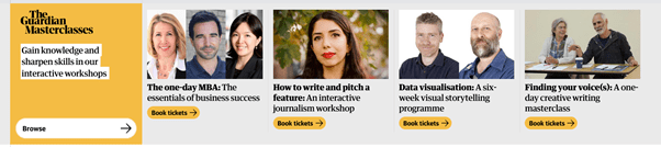 Ett annat sätt att få oss läsare att känna oss delaktiga är att journalisterna bjuder in oss till The Guardians master-klasser.